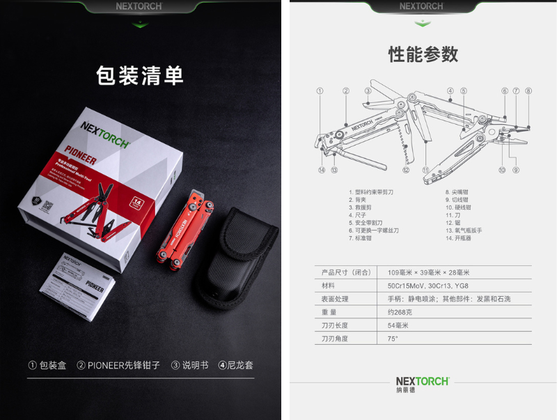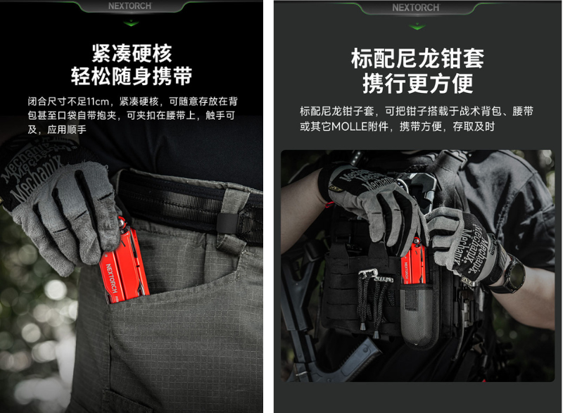 ●大鉗頭、大主刀、大鋸子、大塑料約束帶剪和安全帶割繩刀等多功能的整合