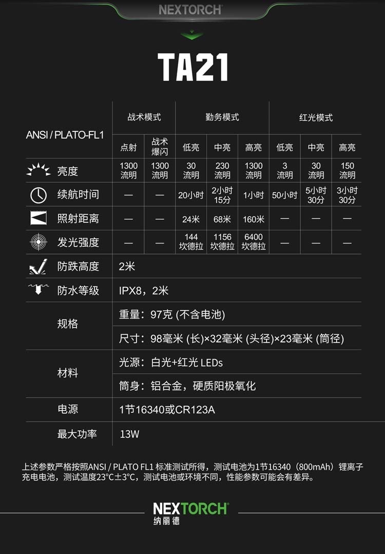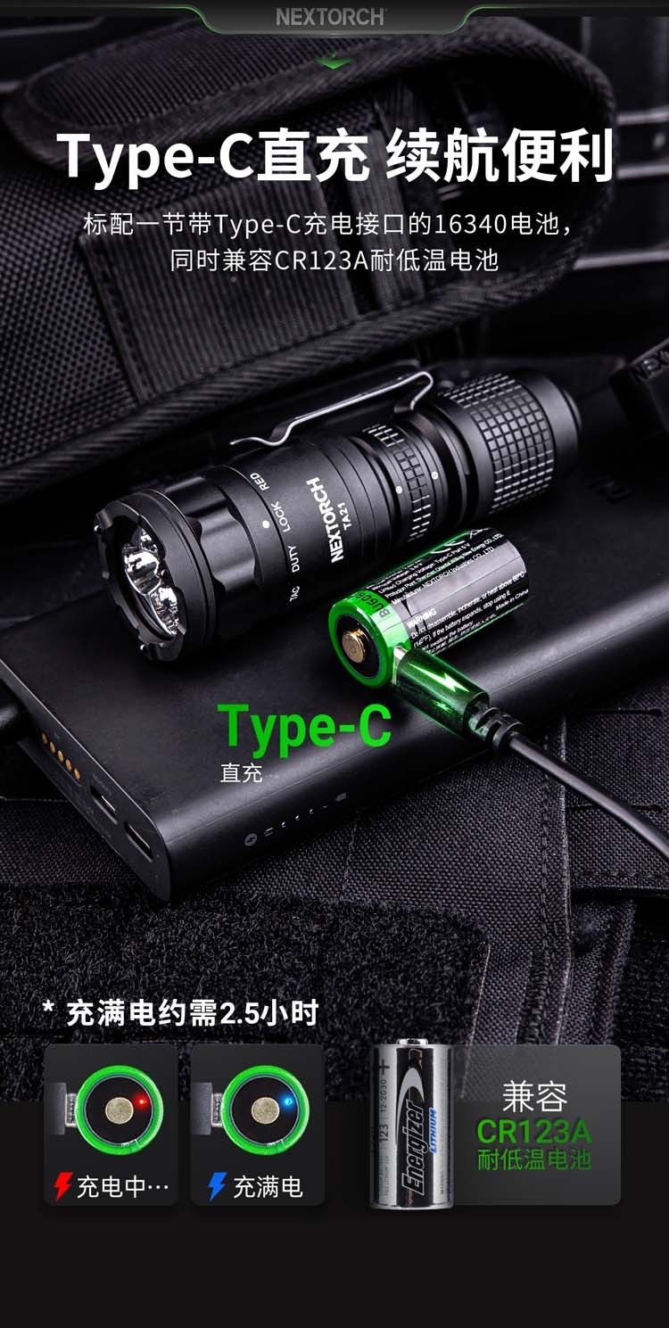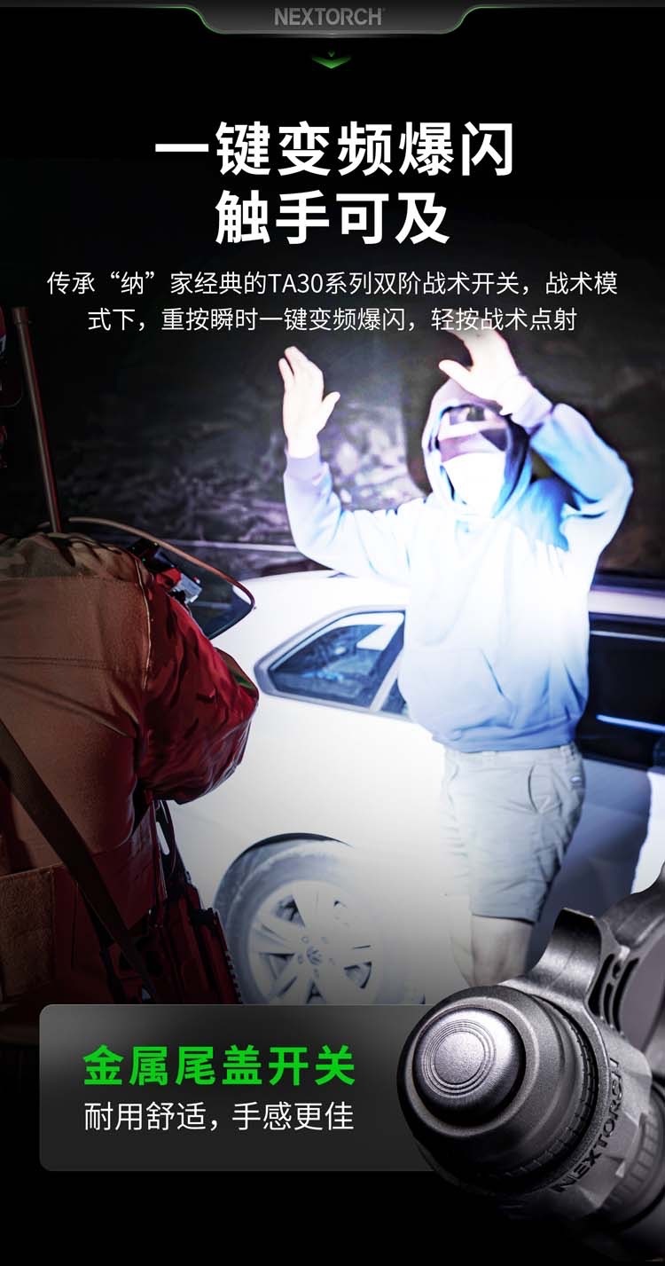 ●紅白雙色光源,高達1300流明超高亮專業的隨身EDC戰術手電筒