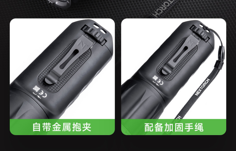 ●納家首款扁形筒身手電,緊俏精巧,符合人體握持習慣,單手也可操作,絲滑順暢