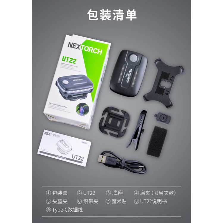✅與UT21差別在於此UT22的配件多樣化,有頭盔夾、織帶夾、魔鬼氈貼,多元因應不同場景的需求